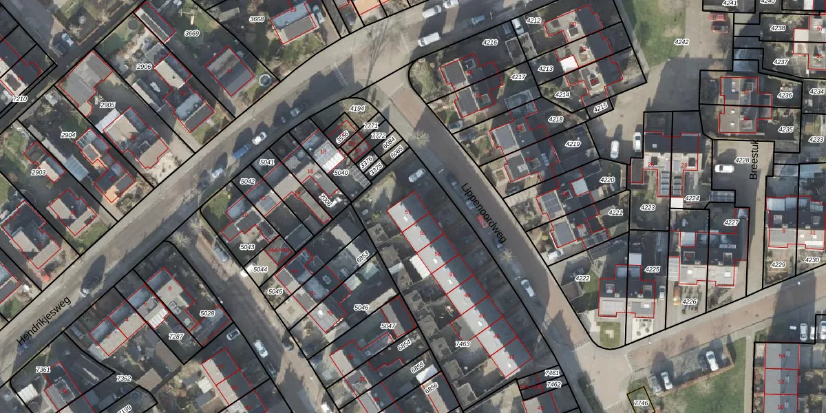 Het perceel waarop Lippenoordweg 57 staat heeft een oppervlakte van 1402 m². Dit is een zeer groot perceel. De perceeloppervlakte wordt geregistreerd door het Kadaster. Gedetailleerde informatie over de maten van dit perceel kunt u vinden in het rapport Kadastrale kaart met maatvoering van Lippenoordweg 57.