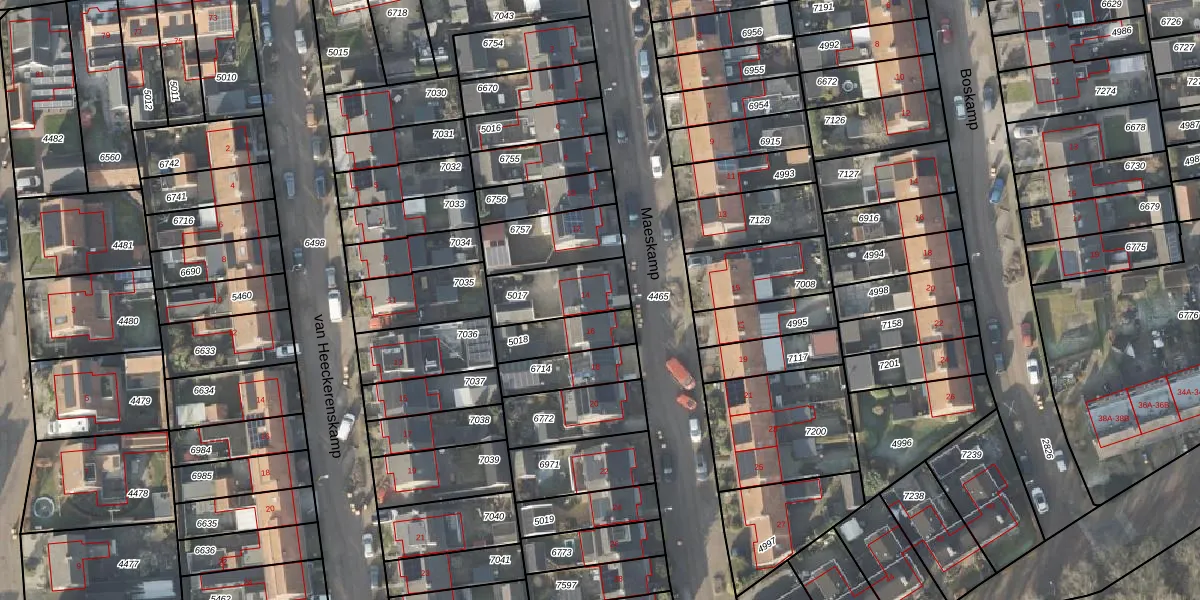 Het perceel waarop Maeskamp 14 staat heeft een oppervlakte van 205 m². Dit is een middelgroot perceel. De perceeloppervlakte wordt geregistreerd door het Kadaster. Gedetailleerde informatie over de maten van dit perceel kunt u vinden in het rapport Kadastrale kaart met maatvoering van Maeskamp 14.