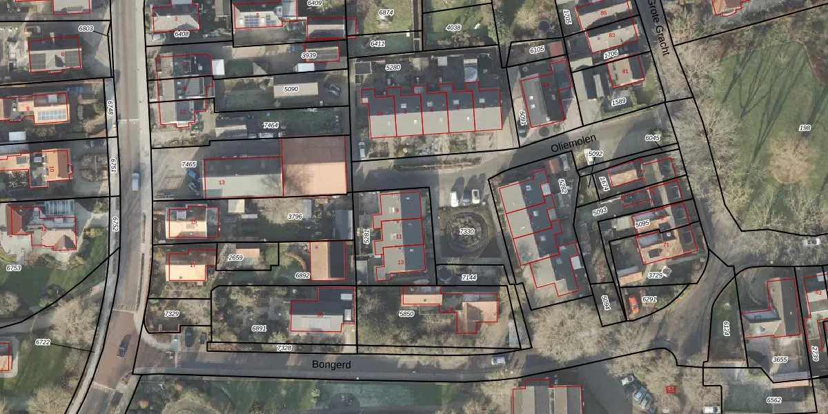Het perceel waarop Oliemolen 9 staat heeft een oppervlakte van 444 m². Dit is een groot perceel. De perceeloppervlakte wordt geregistreerd door het Kadaster. Gedetailleerde informatie over de maten van dit perceel kunt u vinden in het rapport Kadastrale kaart met maatvoering van Oliemolen 9.