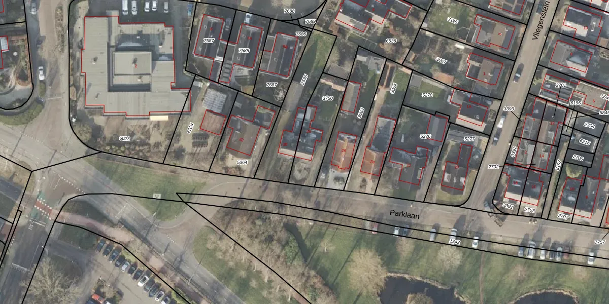 Het perceel waarop Parklaan 28 staat heeft een oppervlakte van 354 m². Dit is een groot perceel. De perceeloppervlakte wordt geregistreerd door het Kadaster. Gedetailleerde informatie over de maten van dit perceel kunt u vinden in het rapport Kadastrale kaart met maatvoering van Parklaan 28.