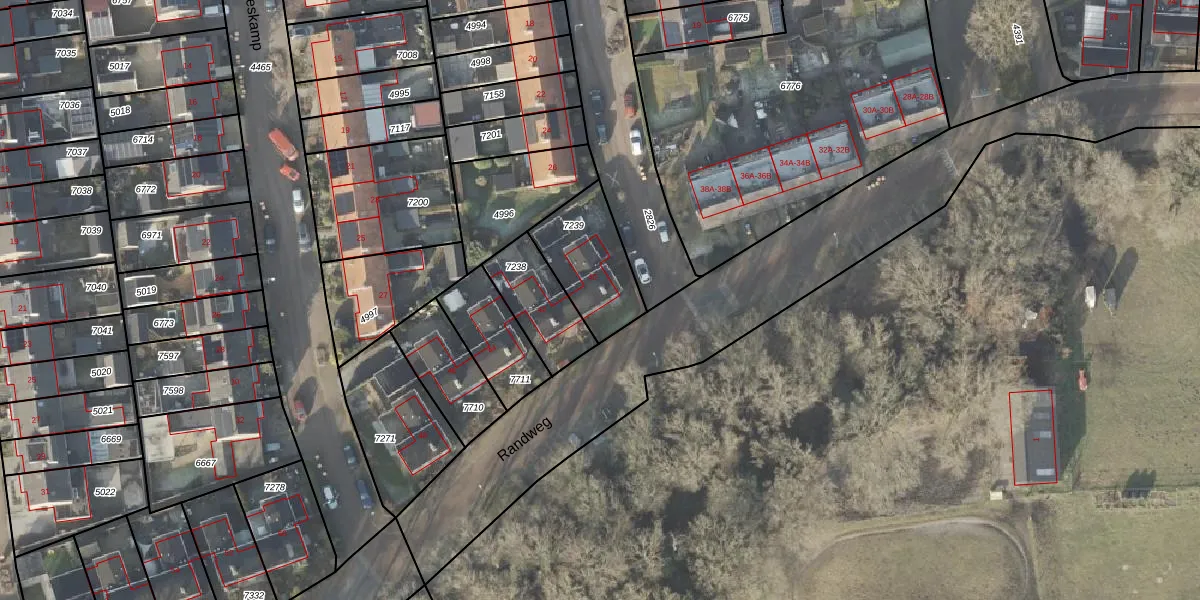 Het perceel waarop Randweg 40 staat heeft een oppervlakte van 265 m². Dit is een middelgroot perceel. De perceeloppervlakte wordt geregistreerd door het Kadaster. Gedetailleerde informatie over de maten van dit perceel kunt u vinden in het rapport Kadastrale kaart met maatvoering van Randweg 40.