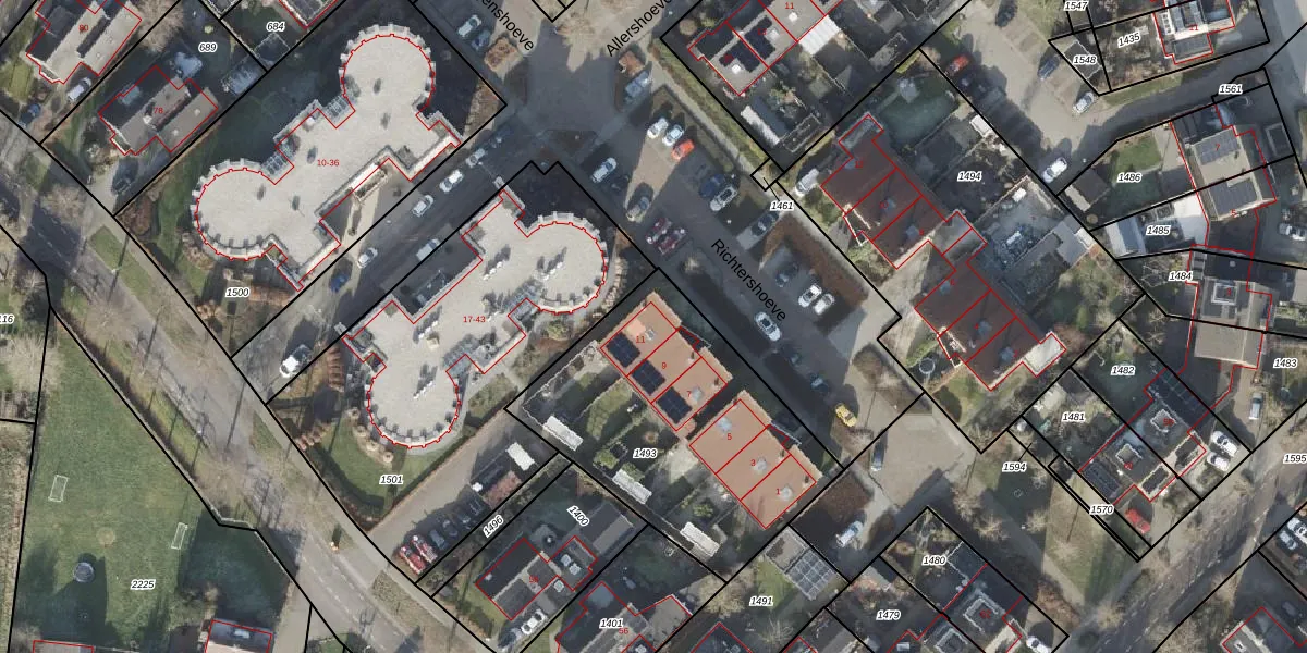 Richtershoeve 11 is gelegen op kadastraal perceel HTM00AA1493. Deze kadastrale aanduiding is uniek en wordt gebruikt door het Kadaster om eigendomsrechten en andere zakelijke rechten vast te leggen. Het perceel maakt onderdeel uit van de kadastrale gemeente Hattem.