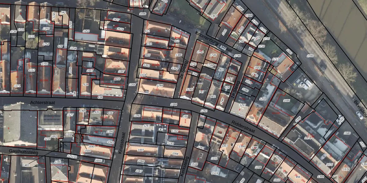 Het perceel waarop Ridderstraat 1-C staat heeft een oppervlakte van 98 m². Dit is een klein perceel. De perceeloppervlakte wordt geregistreerd door het Kadaster. Gedetailleerde informatie over de maten van dit perceel kunt u vinden in het rapport Kadastrale kaart met maatvoering van Ridderstraat 1-C.