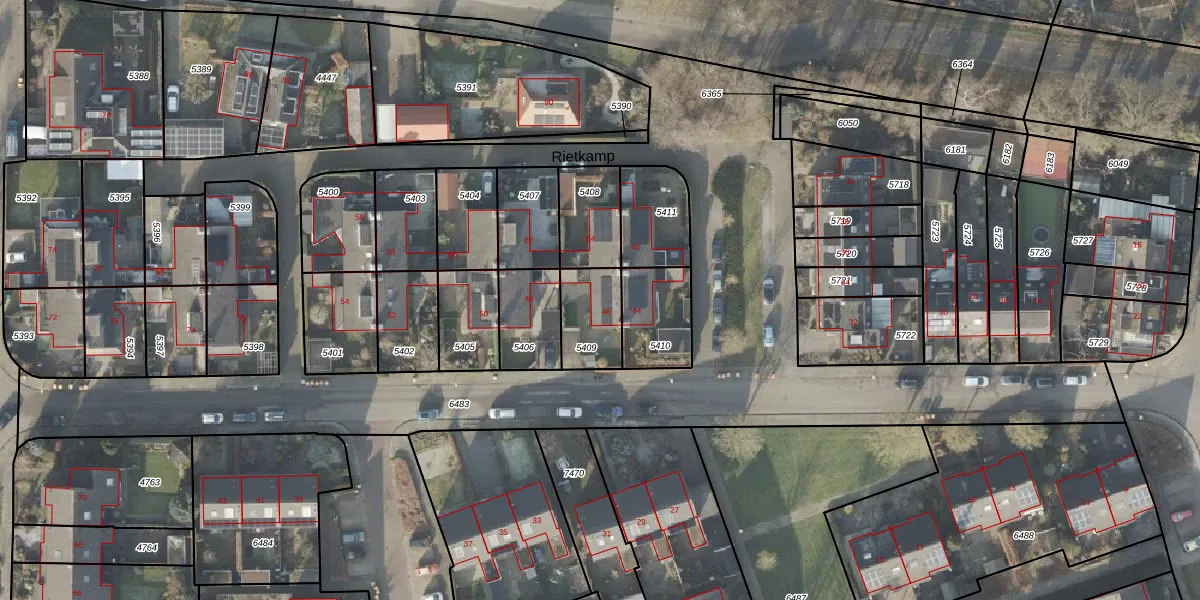 Het perceel waarop Rietkamp 46 staat heeft een oppervlakte van 176 m². Dit is een middelgroot perceel. De perceeloppervlakte wordt geregistreerd door het Kadaster. Gedetailleerde informatie over de maten van dit perceel kunt u vinden in het rapport Kadastrale kaart met maatvoering van Rietkamp 46.