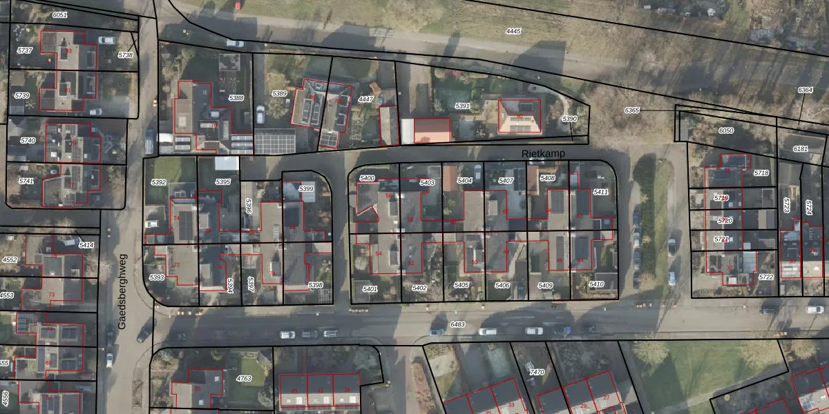 Gebruik de zoekbalk of klik op een perceel voor informatie over de adressen binnen dit perceel.