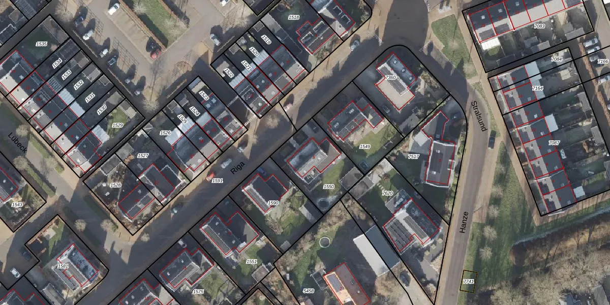 Het perceel waarop Riga 5 staat heeft een oppervlakte van 487 m². Dit is een groot perceel. De perceeloppervlakte wordt geregistreerd door het Kadaster. Gedetailleerde informatie over de maten van dit perceel kunt u vinden in het rapport Kadastrale kaart met maatvoering van Riga 5.