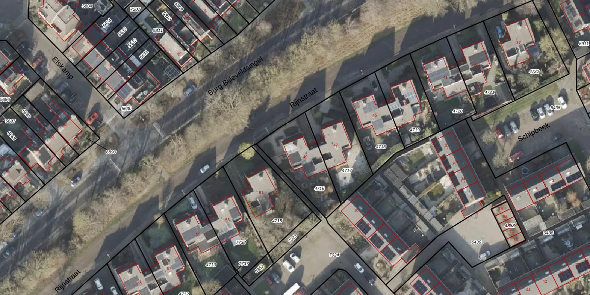 Het perceel waarop Rijnstraat 49 staat heeft een oppervlakte van 450 m². Dit is een groot perceel. De perceeloppervlakte wordt geregistreerd door het Kadaster. Gedetailleerde informatie over de maten van dit perceel kunt u vinden in het rapport Kadastrale kaart met maatvoering van Rijnstraat 49.