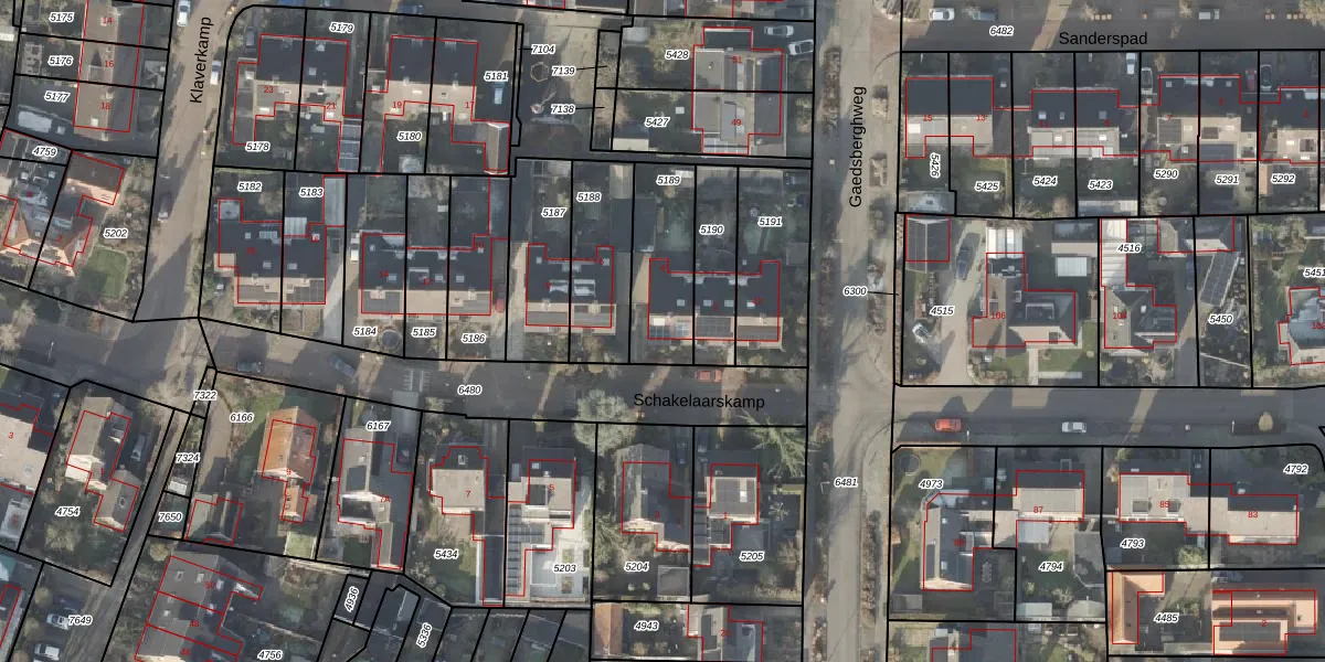 Gebruik de zoekbalk of klik op een perceel voor informatie over de adressen binnen dit perceel.