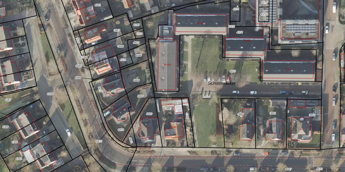 Het perceel waarop Schuttenakker 30-A staat heeft een oppervlakte van 2210 m². Dit is een zeer groot perceel. De perceeloppervlakte wordt geregistreerd door het Kadaster. Gedetailleerde informatie over de maten van dit perceel kunt u vinden in het rapport Kadastrale kaart met maatvoering van Schuttenakker 30-A.