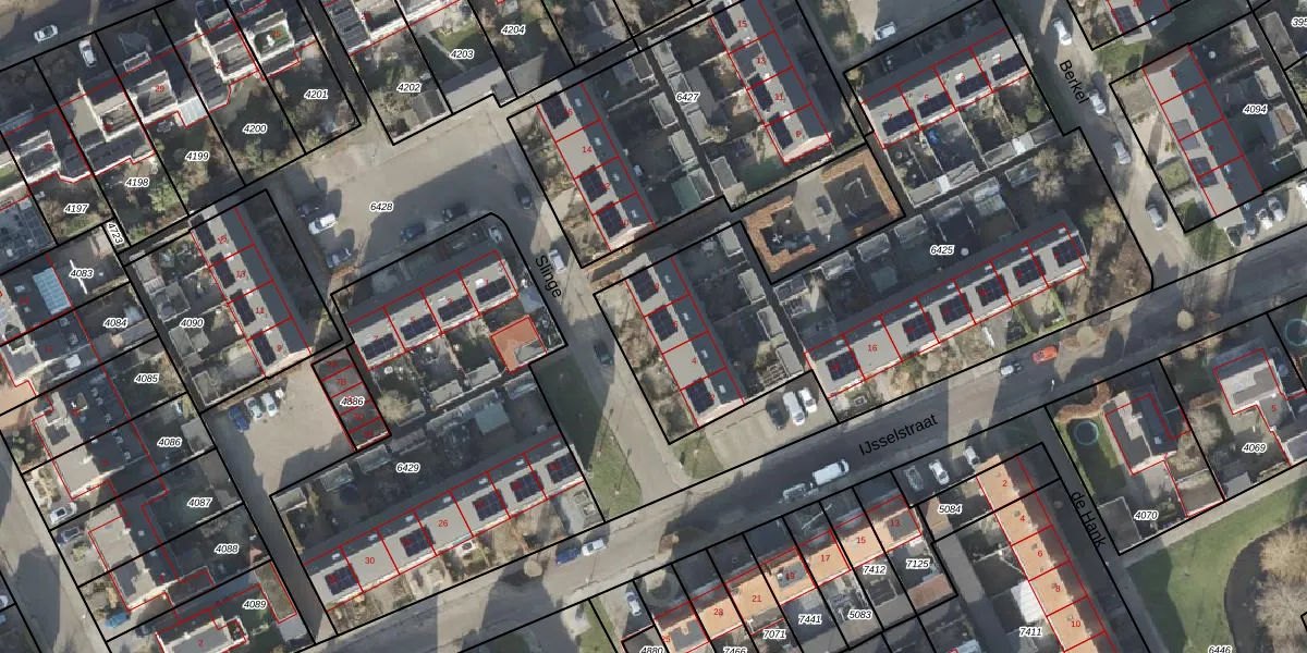 Het adres ligt op het perceel HTM00-D-6425, dat zich in de kadastrale gemeente Hattem bevindt. Het perceel is kleiner dan gemiddeld in Hattem. Het perceel is 2612 m² groot, terwijl het gemiddelde ligt op 3309,46 m². De grootste perceeloppervlakte in de kadastrale gemeente is 60,9 ha. De kleinste oppervlakte bedraagt 0 m². Op het perceel zijn 15 adressen aanwezig. In de Basisregistratie Kadaster (BRK) werden de grenzen van het perceel geregistreerd op 13-09-2001.