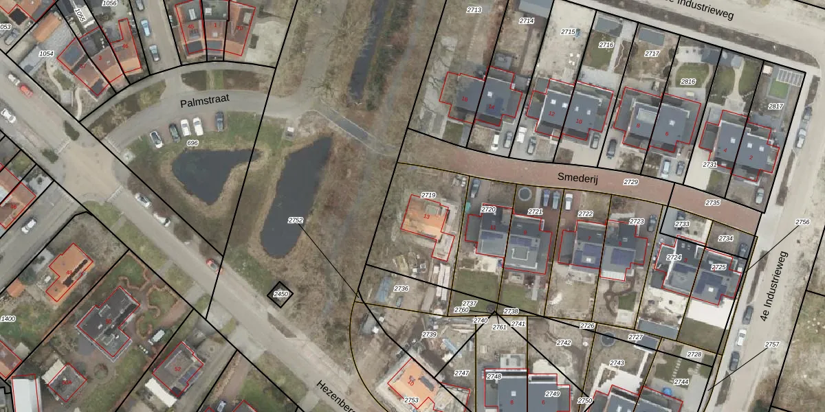 Het perceel waarop Smederij 13 staat heeft een oppervlakte van 535 m². Dit is een groot perceel. De perceeloppervlakte wordt geregistreerd door het Kadaster. Gedetailleerde informatie over de maten van dit perceel kunt u vinden in het rapport Kadastrale kaart met maatvoering van Smederij 13.