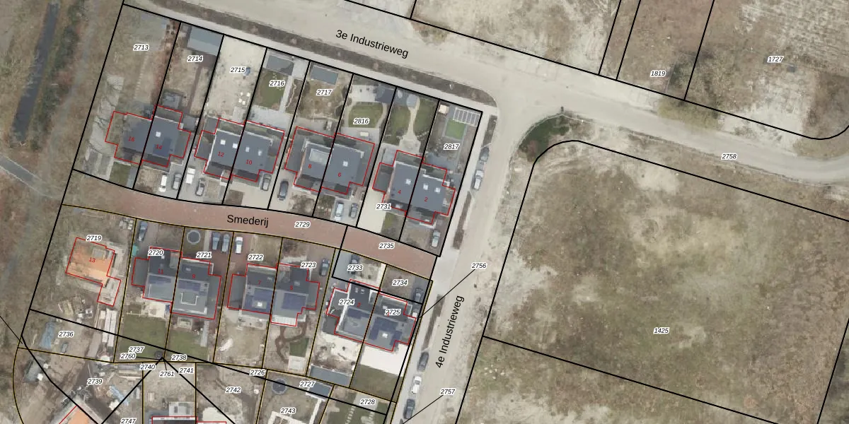 Het perceel waarop Smederij 2 staat heeft een oppervlakte van 366 m². Dit is een groot perceel. De perceeloppervlakte wordt geregistreerd door het Kadaster. Gedetailleerde informatie over de maten van dit perceel kunt u vinden in het rapport Kadastrale kaart met maatvoering van Smederij 2.