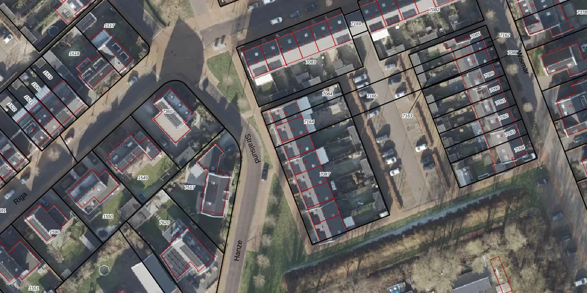 Het perceel waarop Stralsund 12 staat heeft een oppervlakte van 1005 m². Dit is een zeer groot perceel. De perceeloppervlakte wordt geregistreerd door het Kadaster. Gedetailleerde informatie over de maten van dit perceel kunt u vinden in het rapport Kadastrale kaart met maatvoering van Stralsund 12.