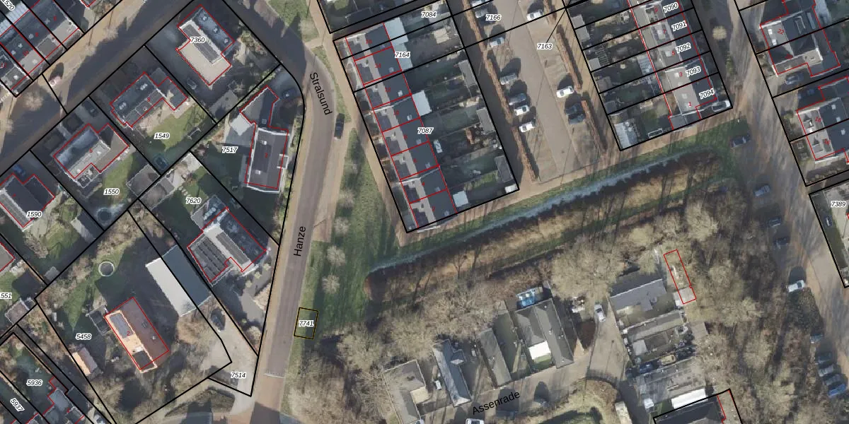 Het perceel waarop Stralsund 2 staat heeft een oppervlakte van 1005 m². Dit is een zeer groot perceel. De perceeloppervlakte wordt geregistreerd door het Kadaster. Gedetailleerde informatie over de maten van dit perceel kunt u vinden in het rapport Kadastrale kaart met maatvoering van Stralsund 2.