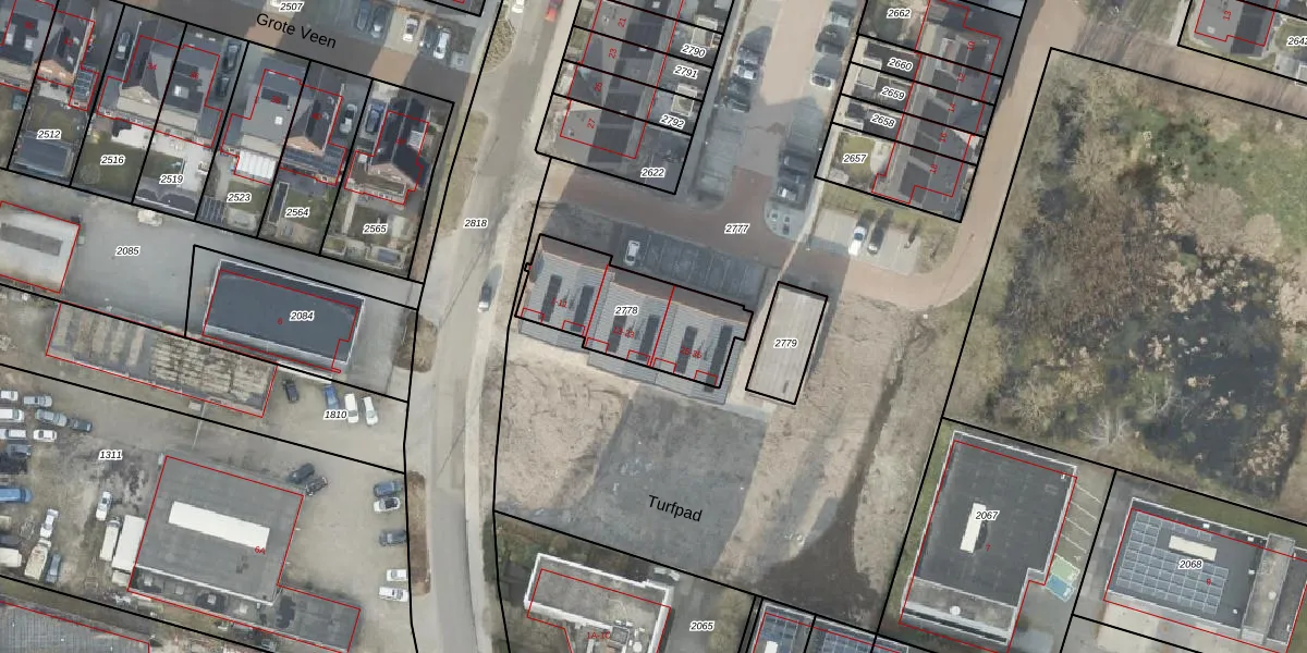 Het perceel waarop Turfpad 19 staat heeft een oppervlakte van 445 m². Dit is een groot perceel. De perceeloppervlakte wordt geregistreerd door het Kadaster. Gedetailleerde informatie over de maten van dit perceel kunt u vinden in het rapport Kadastrale kaart met maatvoering van Turfpad 19.