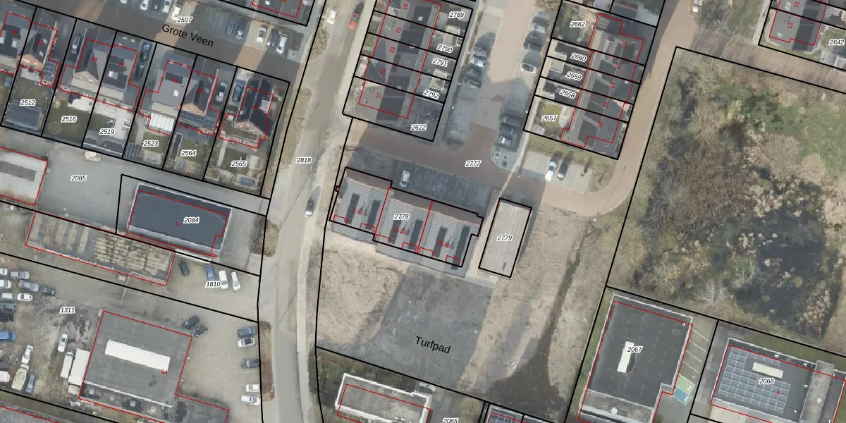 Het perceel waarop Turfpad 23 staat heeft een oppervlakte van 445 m². Dit is een groot perceel. De perceeloppervlakte wordt geregistreerd door het Kadaster. Gedetailleerde informatie over de maten van dit perceel kunt u vinden in het rapport Kadastrale kaart met maatvoering van Turfpad 23.