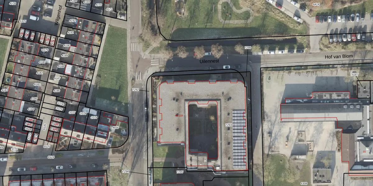 Het perceel waarop Uilennest 87 staat heeft een oppervlakte van 2610 m². Dit is een zeer groot perceel. De perceeloppervlakte wordt geregistreerd door het Kadaster. Gedetailleerde informatie over de maten van dit perceel kunt u vinden in het rapport Kadastrale kaart met maatvoering van Uilennest 87.