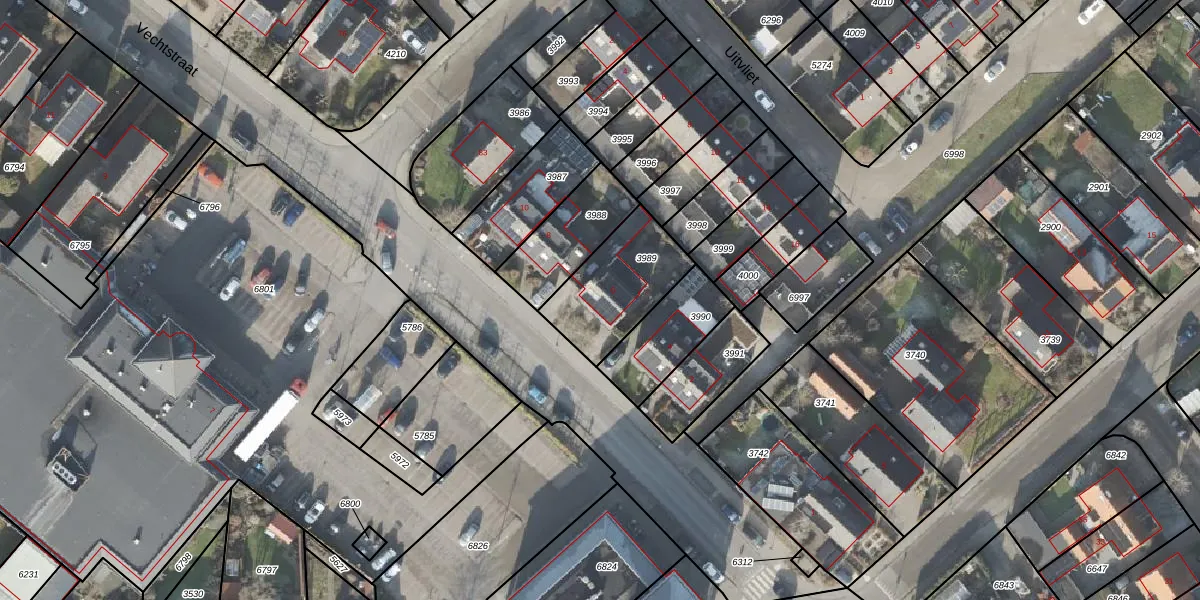 Gebruik de zoekbalk of klik op een perceel voor informatie over de adressen binnen dit perceel.