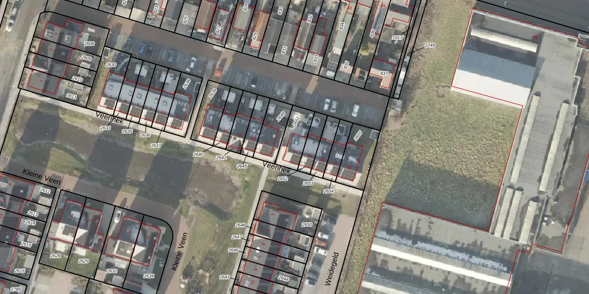 Het perceel waarop Veenhek 24 staat heeft een oppervlakte van 165 m². Dit is een middelgroot perceel. De perceeloppervlakte wordt geregistreerd door het Kadaster. Gedetailleerde informatie over de maten van dit perceel kunt u vinden in het rapport Kadastrale kaart met maatvoering van Veenhek 24.