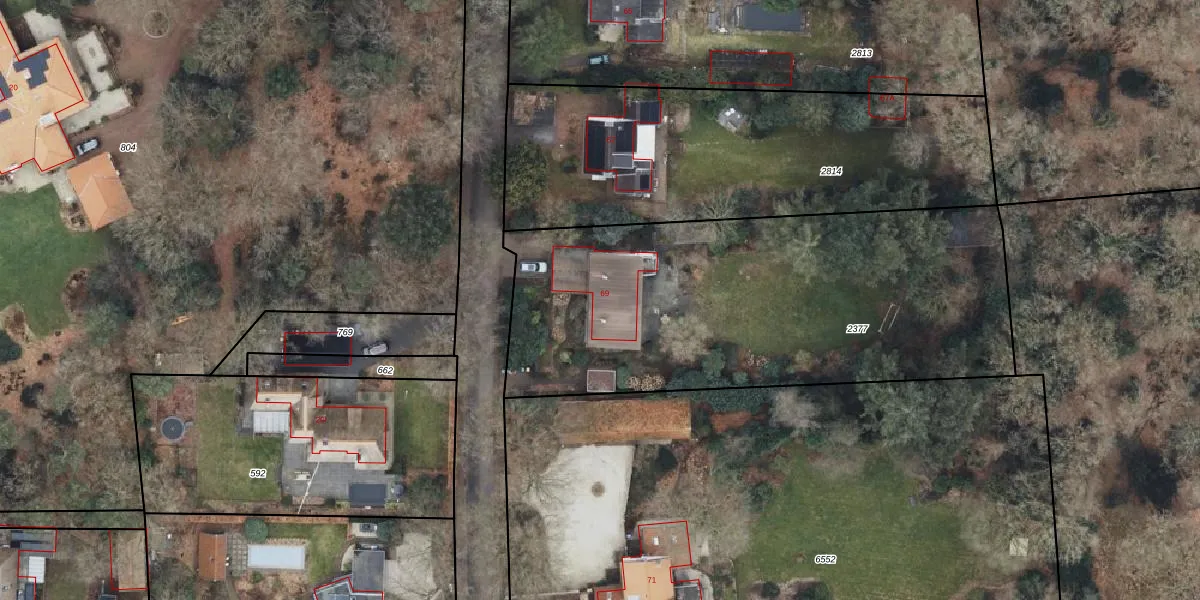 Het perceel waarop Veldweg 69 staat heeft een oppervlakte van 2370 m². Dit is een zeer groot perceel. De perceeloppervlakte wordt geregistreerd door het Kadaster. Gedetailleerde informatie over de maten van dit perceel kunt u vinden in het rapport Kadastrale kaart met maatvoering van Veldweg 69.