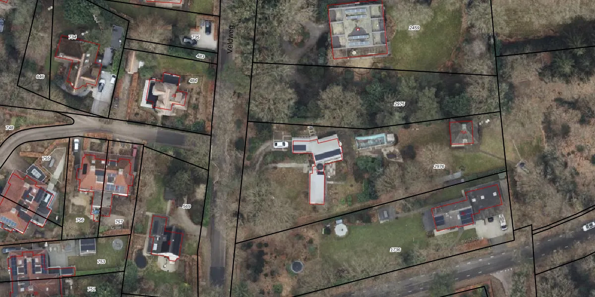 Het perceel waarop Veldweg 75 staat heeft een oppervlakte van 2460 m². Dit is een zeer groot perceel. De perceeloppervlakte wordt geregistreerd door het Kadaster. Gedetailleerde informatie over de maten van dit perceel kunt u vinden in het rapport Kadastrale kaart met maatvoering van Veldweg 75.