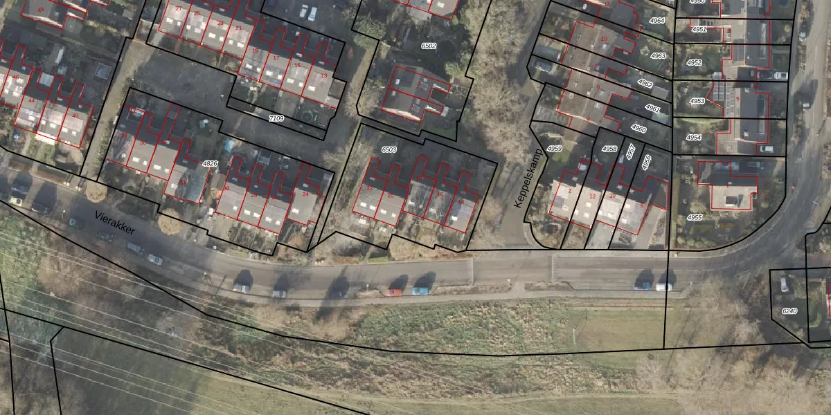 Het perceel waarop Vierakker 18 staat heeft een oppervlakte van 874 m². Dit is een groot perceel. De perceeloppervlakte wordt geregistreerd door het Kadaster. Gedetailleerde informatie over de maten van dit perceel kunt u vinden in het rapport Kadastrale kaart met maatvoering van Vierakker 18.
