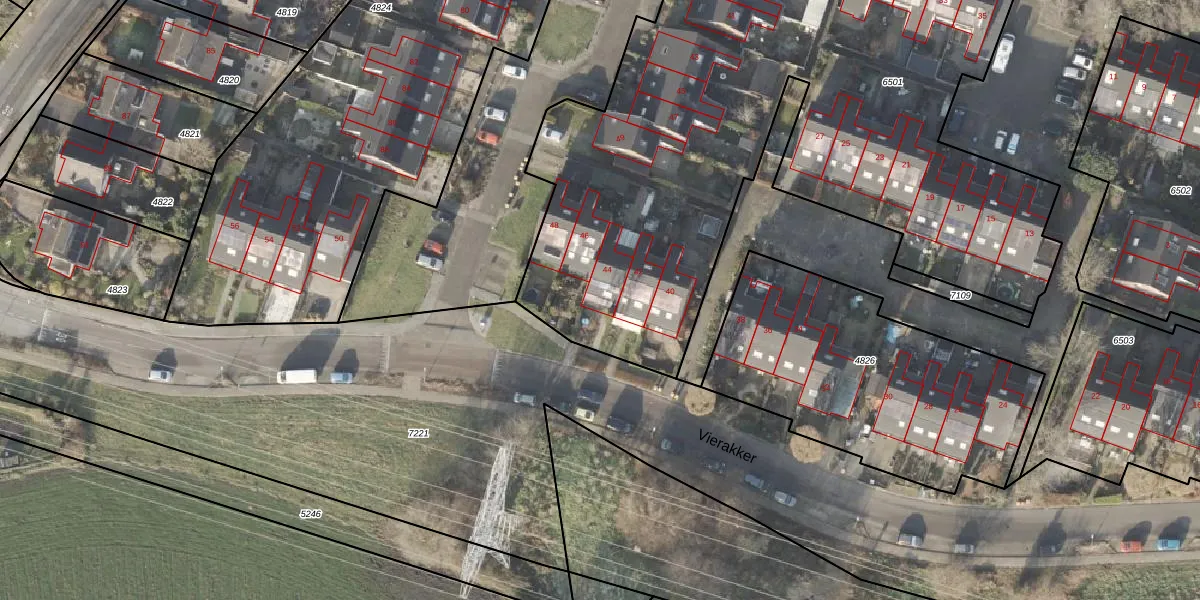 Het perceel waarop Vierakker 44 staat heeft een oppervlakte van 3930 m². Dit is een zeer groot perceel. De perceeloppervlakte wordt geregistreerd door het Kadaster. Gedetailleerde informatie over de maten van dit perceel kunt u vinden in het rapport Kadastrale kaart met maatvoering van Vierakker 44.