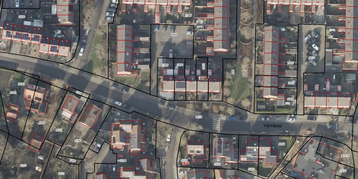 Gebruik de zoekbalk of klik op een perceel voor informatie over de adressen binnen dit perceel.