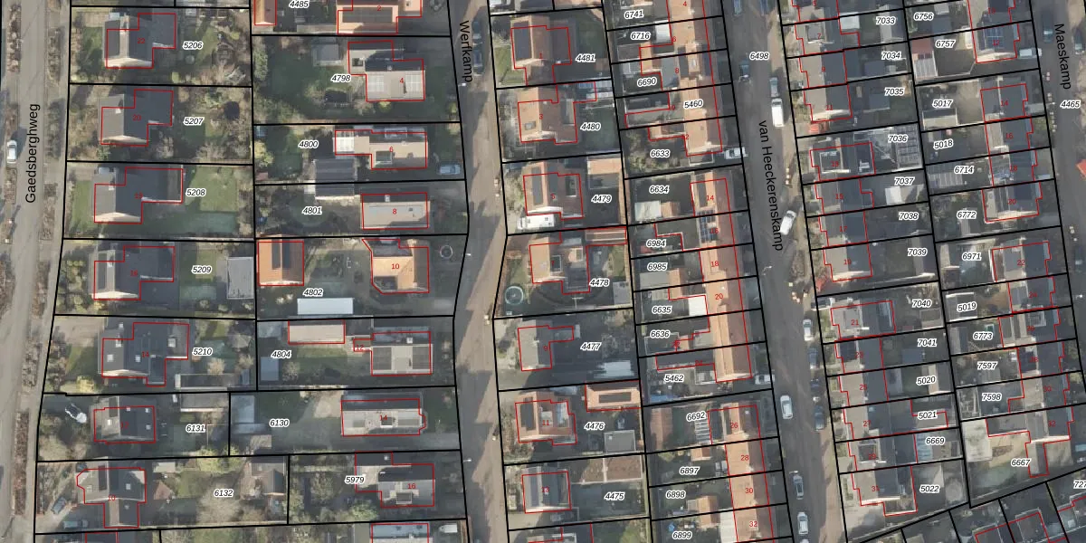 Gebruik de zoekbalk of klik op een perceel voor informatie over de adressen binnen dit perceel.
