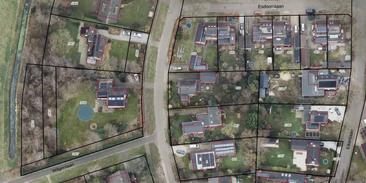 Het perceel waarop Wilgenlaan 9 staat heeft een oppervlakte van 945 m². Dit is een groot perceel. De perceeloppervlakte wordt geregistreerd door het Kadaster. Gedetailleerde informatie over de maten van dit perceel kunt u vinden in het rapport Kadastrale kaart met maatvoering van Wilgenlaan 9.