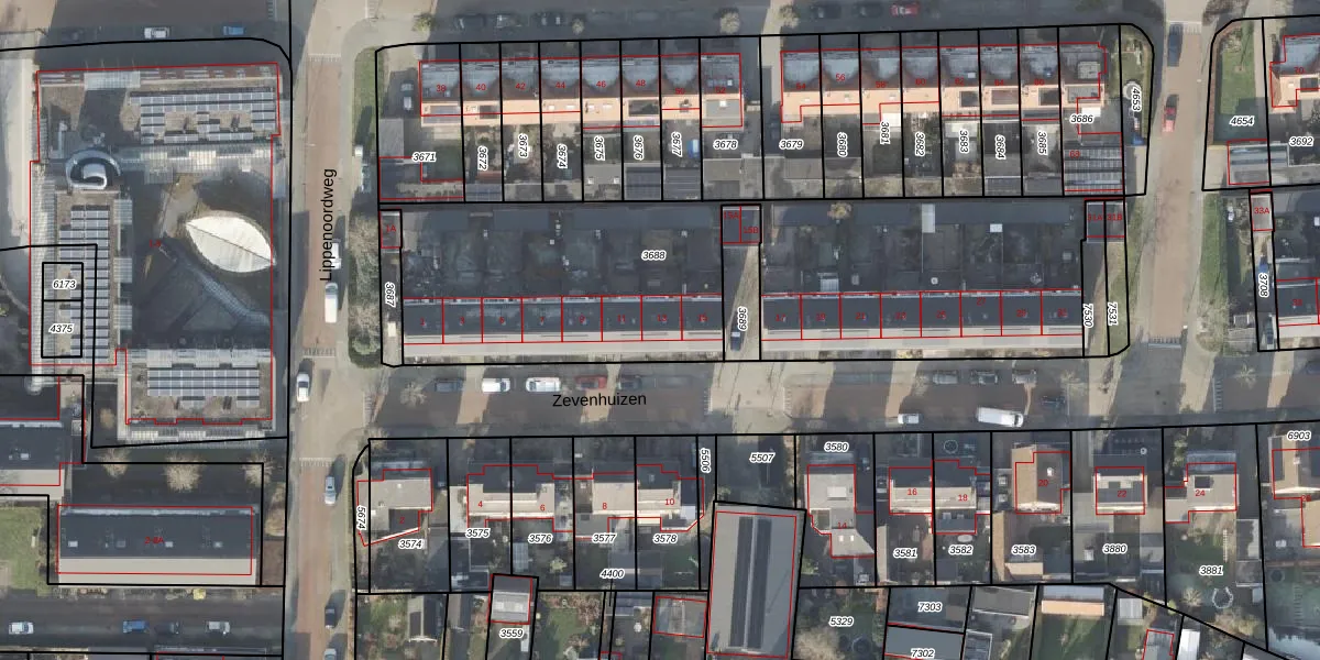 Het perceel waarop Zevenhuizen 13 staat heeft een oppervlakte van 2400 m². Dit is een zeer groot perceel. De perceeloppervlakte wordt geregistreerd door het Kadaster. Gedetailleerde informatie over de maten van dit perceel kunt u vinden in het rapport Kadastrale kaart met maatvoering van Zevenhuizen 13.