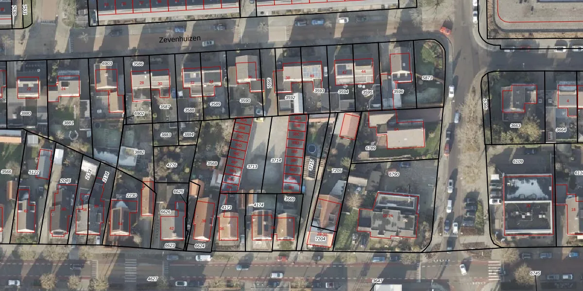 Het perceel waarop Zevenhuizen 38-D staat heeft een oppervlakte van 345 m². Dit is een groot perceel. De perceeloppervlakte wordt geregistreerd door het Kadaster. Gedetailleerde informatie over de maten van dit perceel kunt u vinden in het rapport Kadastrale kaart met maatvoering van Zevenhuizen 38-D.