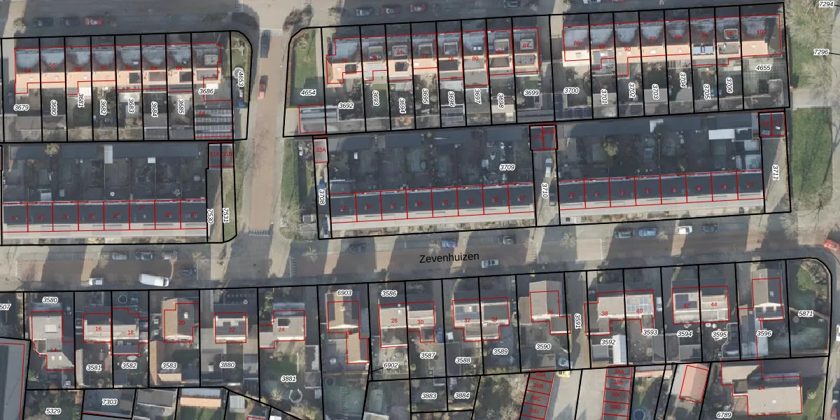 Het perceel waarop Zevenhuizen 39 staat heeft een oppervlakte van 2413 m². Dit is een zeer groot perceel. De perceeloppervlakte wordt geregistreerd door het Kadaster. Gedetailleerde informatie over de maten van dit perceel kunt u vinden in het rapport Kadastrale kaart met maatvoering van Zevenhuizen 39.