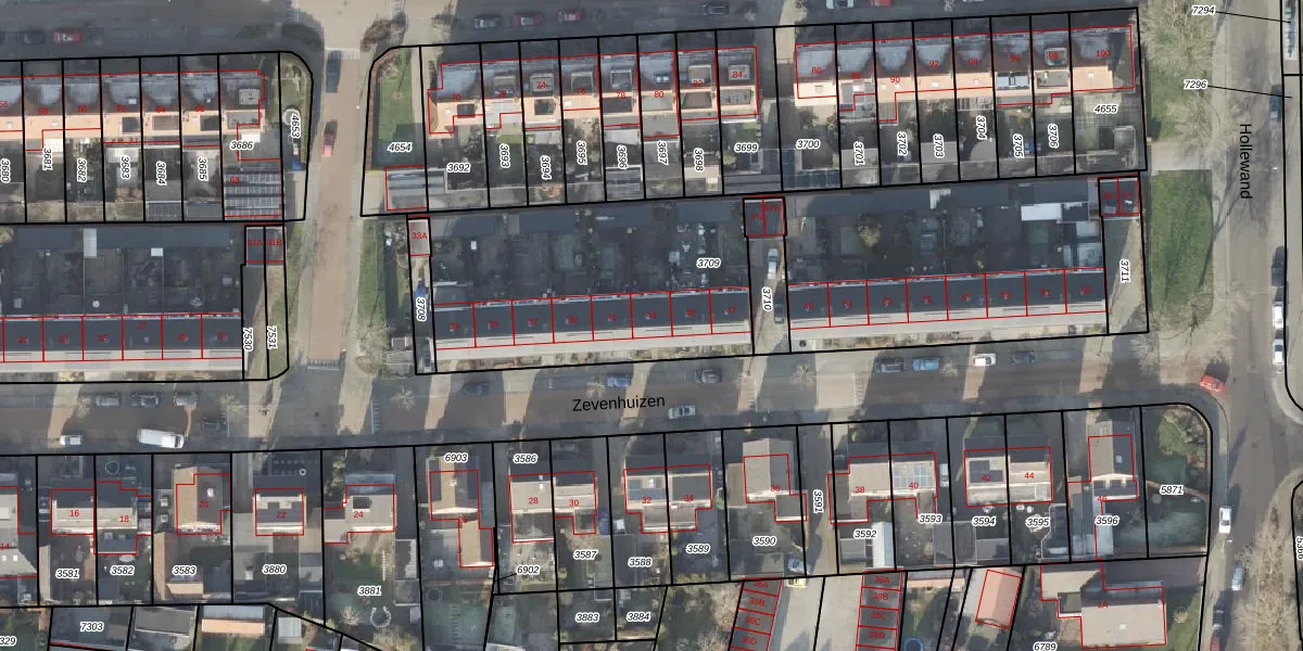 Het perceel waarop Zevenhuizen 43 staat heeft een oppervlakte van 2413 m². Dit is een zeer groot perceel. De perceeloppervlakte wordt geregistreerd door het Kadaster. Gedetailleerde informatie over de maten van dit perceel kunt u vinden in het rapport Kadastrale kaart met maatvoering van Zevenhuizen 43.