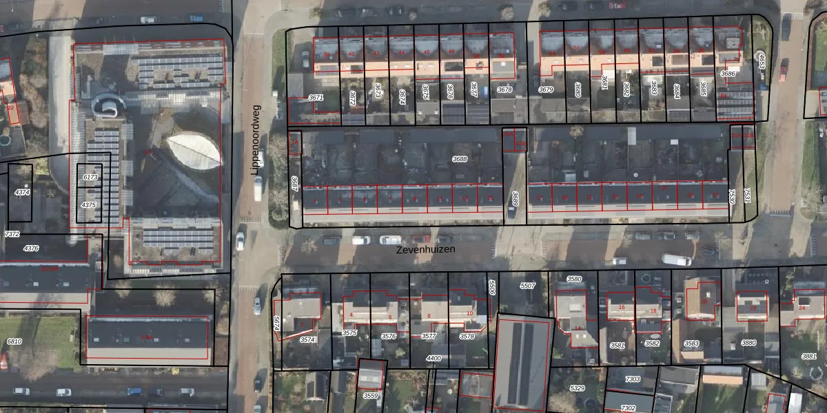 Het perceel waarop Zevenhuizen 9 staat heeft een oppervlakte van 2400 m². Dit is een zeer groot perceel. De perceeloppervlakte wordt geregistreerd door het Kadaster. Gedetailleerde informatie over de maten van dit perceel kunt u vinden in het rapport Kadastrale kaart met maatvoering van Zevenhuizen 9.