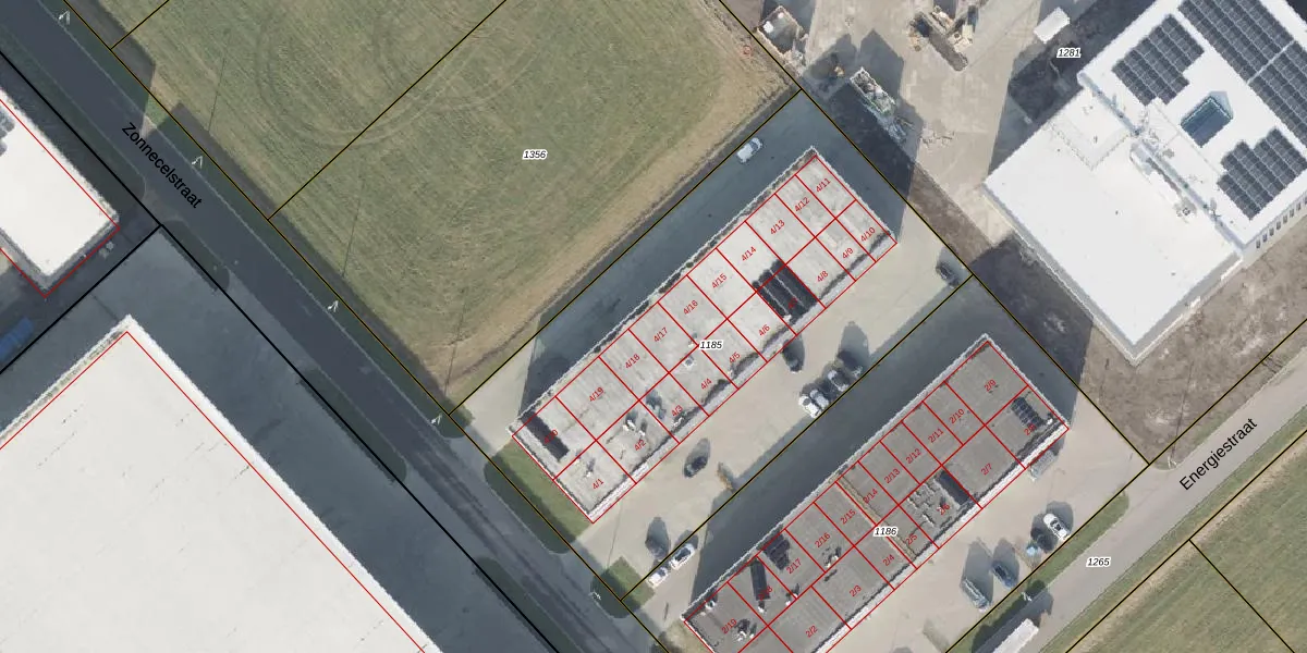 Het perceel waarop Zonnecelstraat 4-17 staat heeft een oppervlakte van 2848 m². Dit is een zeer groot perceel. De perceeloppervlakte wordt geregistreerd door het Kadaster. Gedetailleerde informatie over de maten van dit perceel kunt u vinden in het rapport Kadastrale kaart met maatvoering van Zonnecelstraat 4-17.