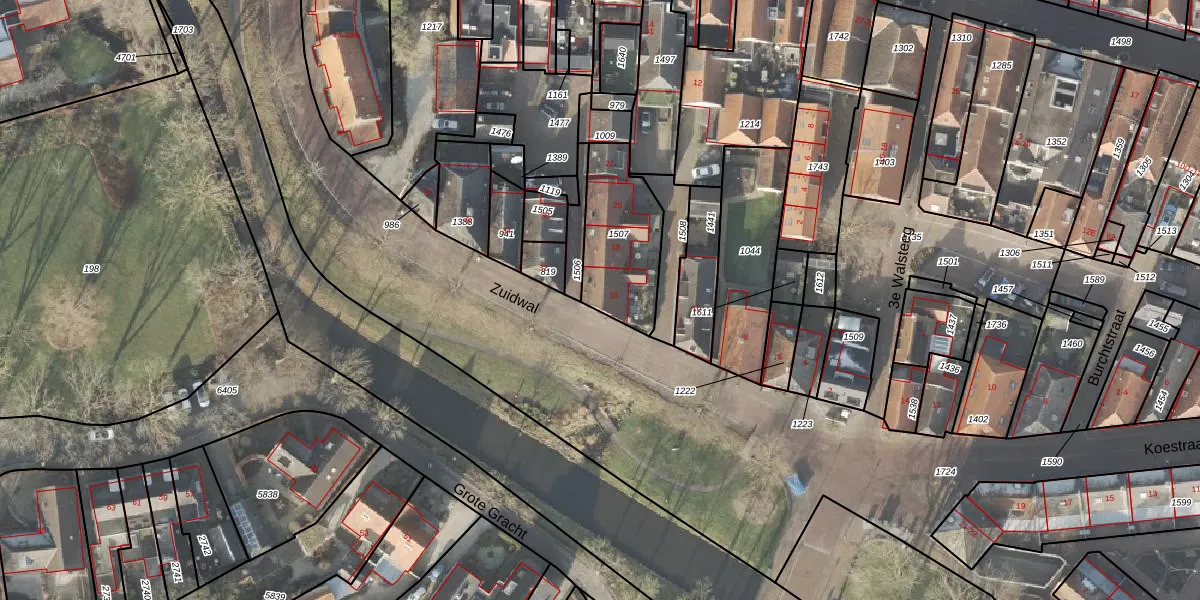 Het perceel waarop Zuidwal 16 staat heeft een oppervlakte van 325 m². Dit is een groot perceel. De perceeloppervlakte wordt geregistreerd door het Kadaster. Gedetailleerde informatie over de maten van dit perceel kunt u vinden in het rapport Kadastrale kaart met maatvoering van Zuidwal 16.