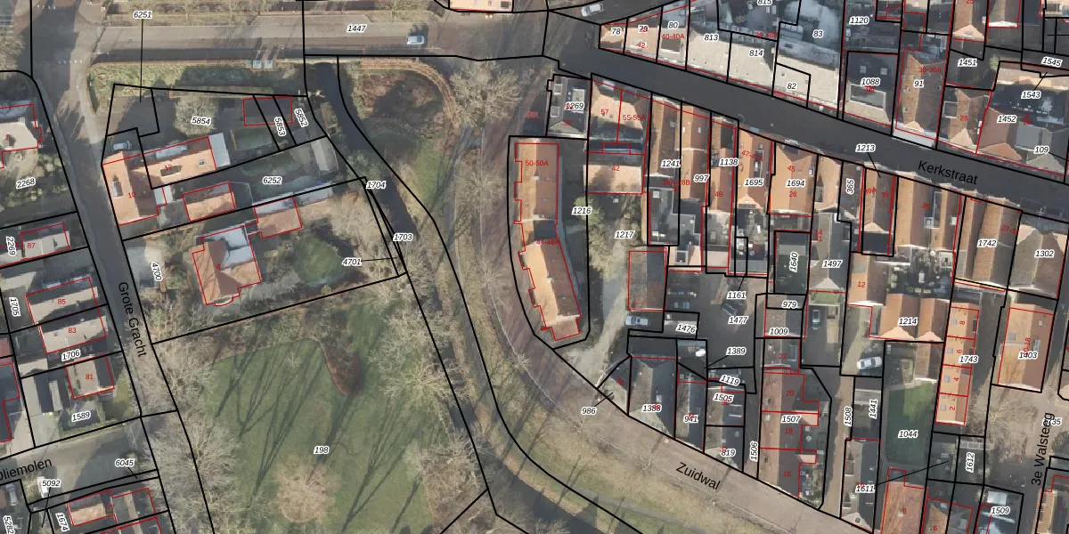 Het perceel waarop Zuidwal 46-A staat heeft een oppervlakte van 567 m². Dit is een groot perceel. De perceeloppervlakte wordt geregistreerd door het Kadaster. Gedetailleerde informatie over de maten van dit perceel kunt u vinden in het rapport Kadastrale kaart met maatvoering van Zuidwal 46-A.