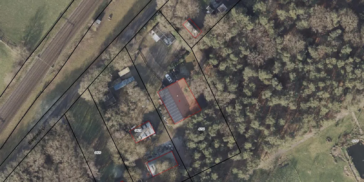 Het perceel waarop Eikenkamp 5-M1 staat heeft een oppervlakte van 2640 m². Dit is een zeer groot perceel. De perceeloppervlakte wordt geregistreerd door het Kadaster. Gedetailleerde informatie over de maten van dit perceel kunt u vinden in het rapport Kadastrale kaart met maatvoering van Eikenkamp 5-M1.