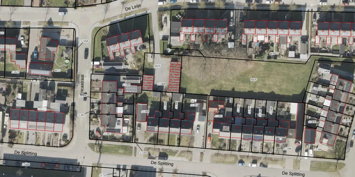 Het perceel waarop De Leije 26-B004 staat heeft een oppervlakte van 444 m². Dit is een groot perceel. De perceeloppervlakte wordt geregistreerd door het Kadaster. Gedetailleerde informatie over de maten van dit perceel kunt u vinden in het rapport Kadastrale kaart met maatvoering van De Leije 26-B004.