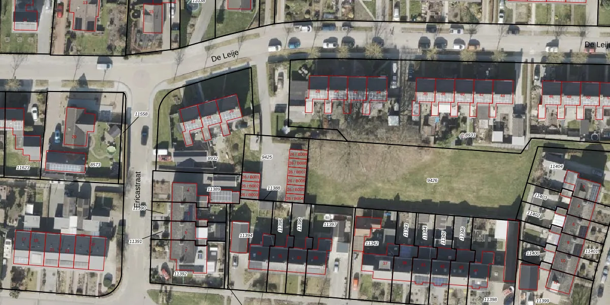 De Leije 26-B009 is gelegen op kadastraal perceel DKB00B9425. Deze kadastrale aanduiding is uniek en wordt gebruikt door het Kadaster om eigendomsrechten en andere zakelijke rechten vast te leggen. Het perceel maakt onderdeel uit van de kadastrale gemeente Donkerbroek.