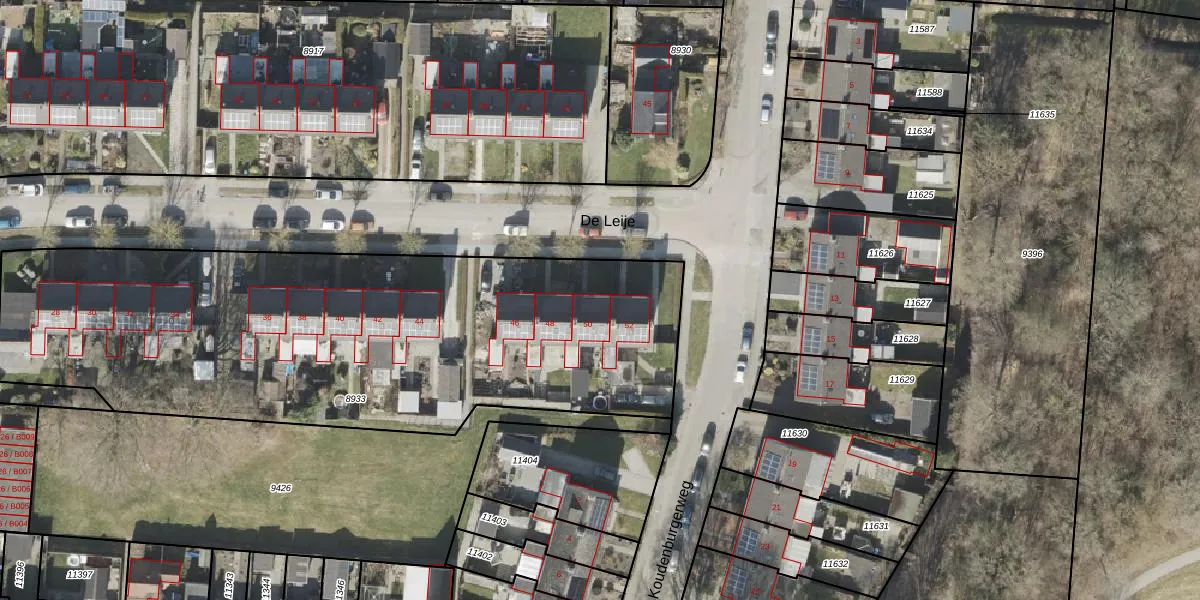 Het perceel waarop De Leije 50 staat heeft een oppervlakte van 3014 m². Dit is een zeer groot perceel. De perceeloppervlakte wordt geregistreerd door het Kadaster. Gedetailleerde informatie over de maten van dit perceel kunt u vinden in het rapport Kadastrale kaart met maatvoering van De Leije 50.