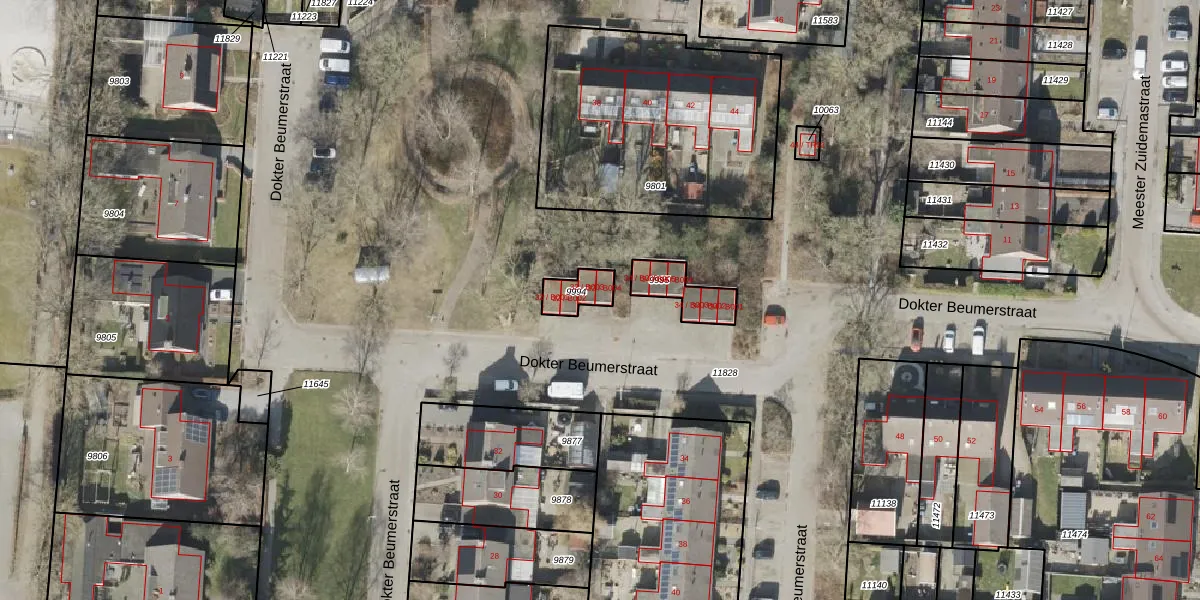 Dokter Beumerstraat 32-B004 is gelegen op kadastraal perceel DKB00B9994. Deze kadastrale aanduiding is uniek en wordt gebruikt door het Kadaster om eigendomsrechten en andere zakelijke rechten vast te leggen. Het perceel maakt onderdeel uit van de kadastrale gemeente Donkerbroek.