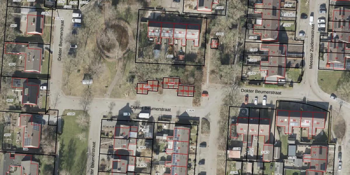 Dokter Beumerstraat 34-B004 is gelegen op kadastraal perceel DKB00B9995. Deze kadastrale aanduiding is uniek en wordt gebruikt door het Kadaster om eigendomsrechten en andere zakelijke rechten vast te leggen. Het perceel maakt onderdeel uit van de kadastrale gemeente Donkerbroek.