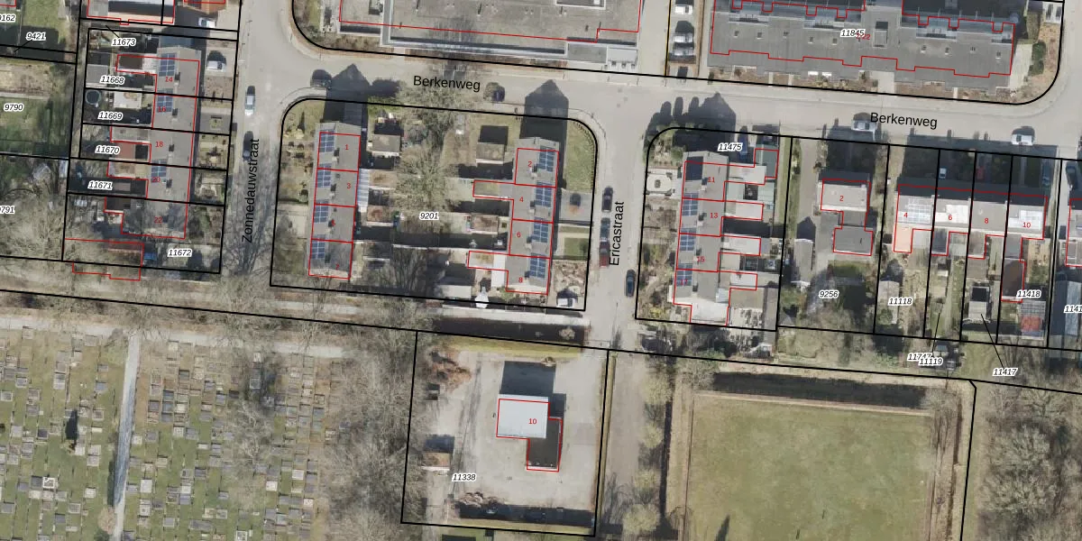 Het perceel waarop Ericastraat 8 staat heeft een oppervlakte van 2028 m². Dit is een zeer groot perceel. De perceeloppervlakte wordt geregistreerd door het Kadaster. Gedetailleerde informatie over de maten van dit perceel kunt u vinden in het rapport Kadastrale kaart met maatvoering van Ericastraat 8.