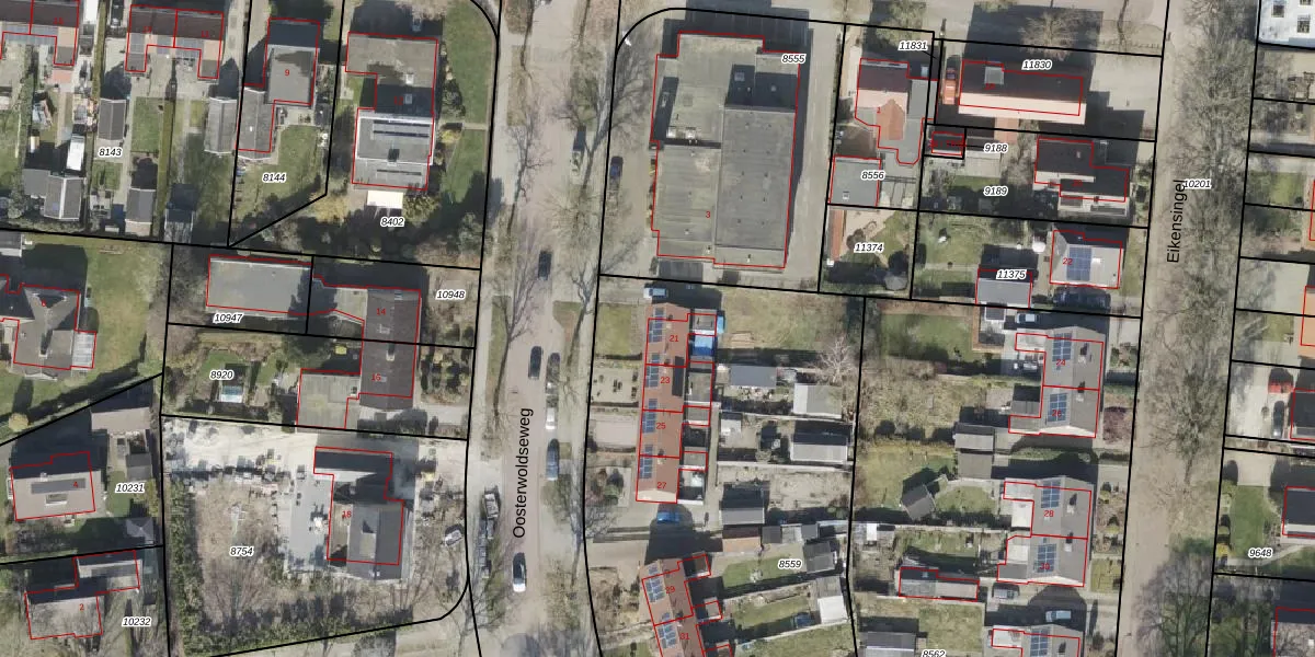 Het perceel waarop Oosterwoldseweg 21 staat heeft een oppervlakte van 4115 m². Dit is een zeer groot perceel. De perceeloppervlakte wordt geregistreerd door het Kadaster. Gedetailleerde informatie over de maten van dit perceel kunt u vinden in het rapport Kadastrale kaart met maatvoering van Oosterwoldseweg 21.