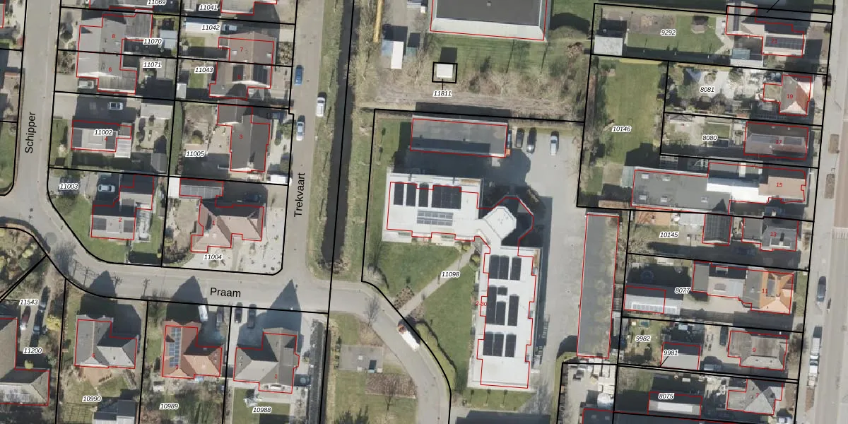 Het perceel waarop Praam 26 staat heeft een oppervlakte van 3585 m². Dit is een zeer groot perceel. De perceeloppervlakte wordt geregistreerd door het Kadaster. Gedetailleerde informatie over de maten van dit perceel kunt u vinden in het rapport Kadastrale kaart met maatvoering van Praam 26.
