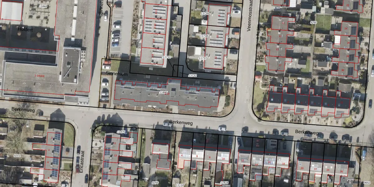 Sinnehiem 14 is gelegen op kadastraal perceel DKB00B11845. Deze kadastrale aanduiding is uniek en wordt gebruikt door het Kadaster om eigendomsrechten en andere zakelijke rechten vast te leggen. Het perceel maakt onderdeel uit van de kadastrale gemeente Donkerbroek.