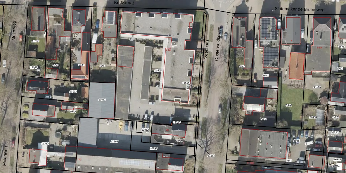 Het perceel waarop Veenbaas 21 staat heeft een oppervlakte van 3188 m². Dit is een zeer groot perceel. De perceeloppervlakte wordt geregistreerd door het Kadaster. Gedetailleerde informatie over de maten van dit perceel kunt u vinden in het rapport Kadastrale kaart met maatvoering van Veenbaas 21.