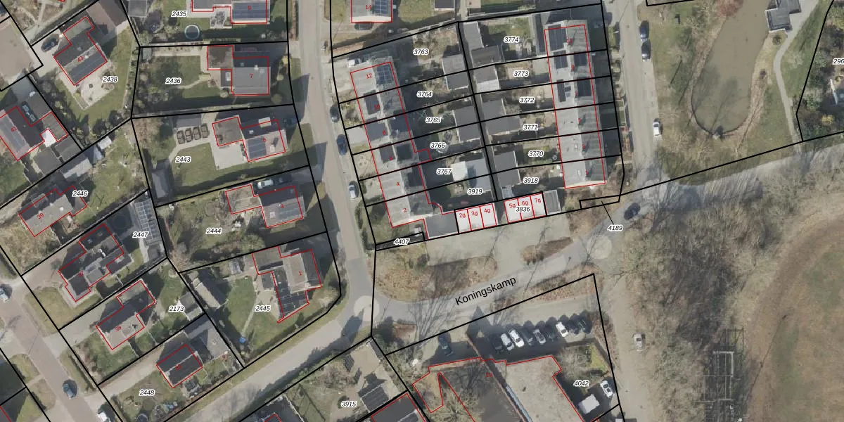 Gebruik de zoekbalk of klik op een perceel voor informatie over de adressen binnen dit perceel.